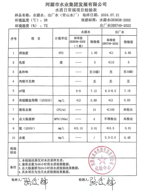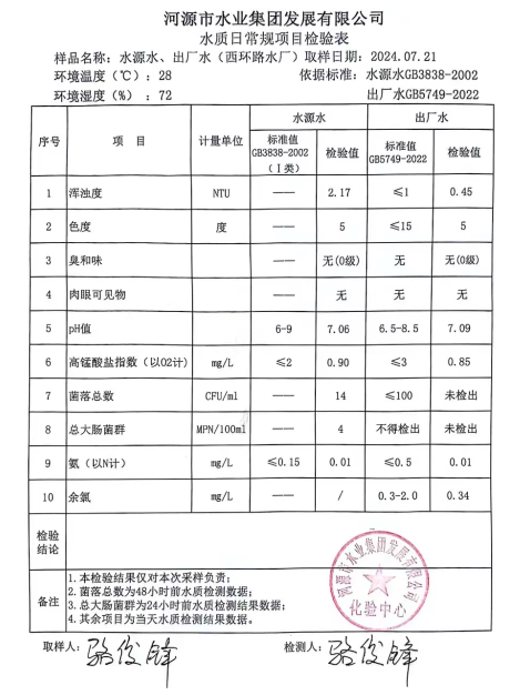 2024年7月21日水質(zhì)檢驗(yàn)報告