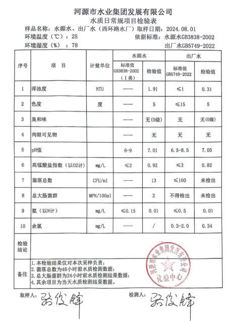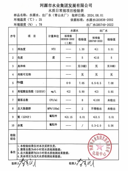 2024年8月1日水質檢驗報告