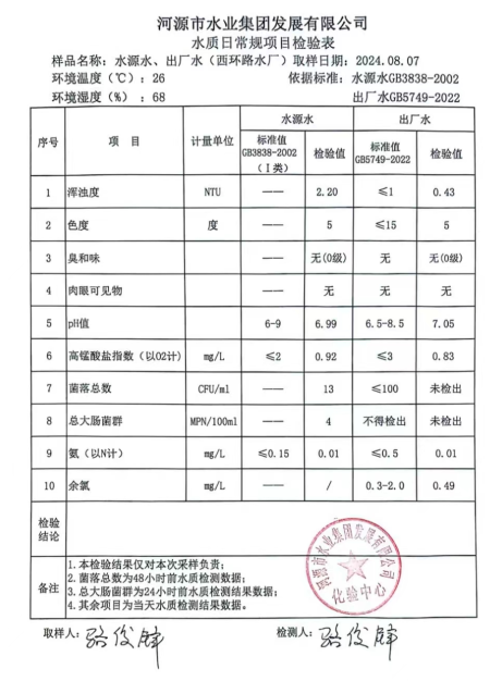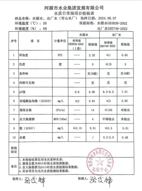 2024年8月7日水質檢驗報告
