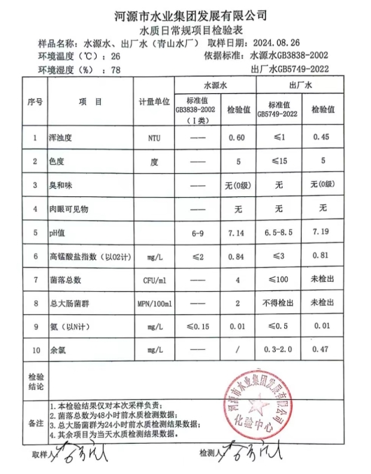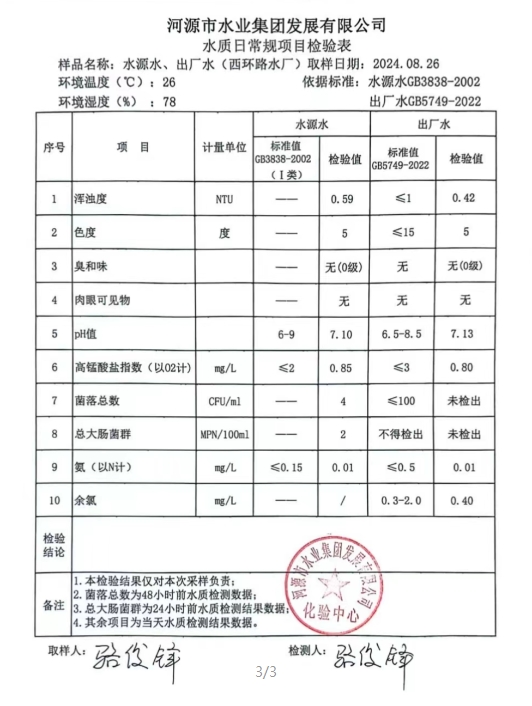 2024年8月26日水質(zhì)檢驗(yàn)報(bào)告