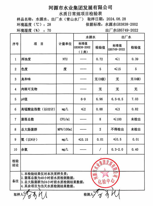 2024年8月28日水質(zhì)檢驗報告