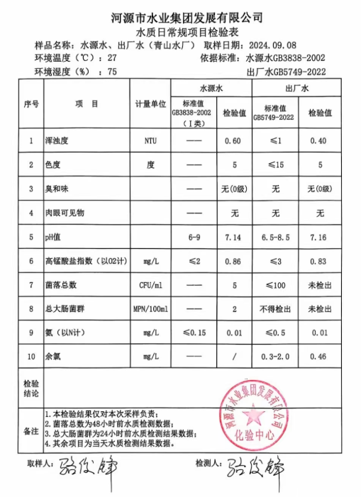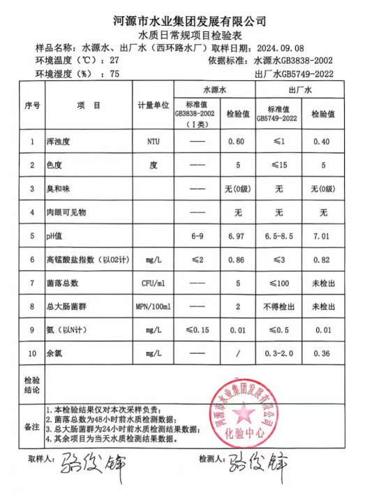 2024年9月8日水質(zhì)檢驗(yàn)報(bào)告