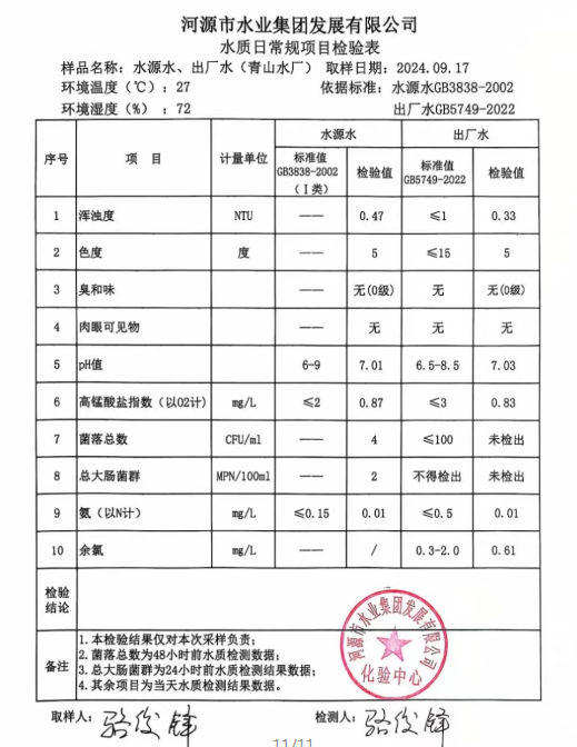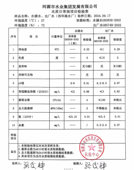 2024年9月17日水質(zhì)檢驗(yàn)報(bào)告