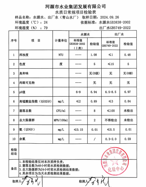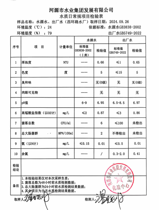 2024年9月26日水質(zhì)檢驗(yàn)報(bào)告
