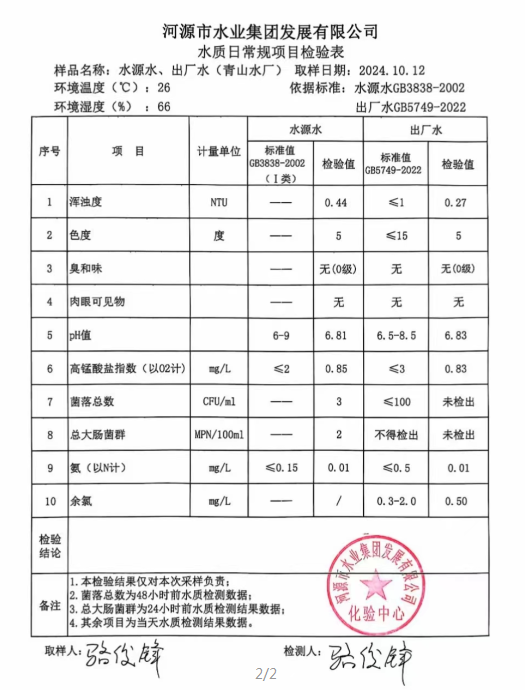 2024年10月12日水質(zhì)檢驗(yàn)報(bào)告