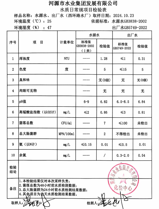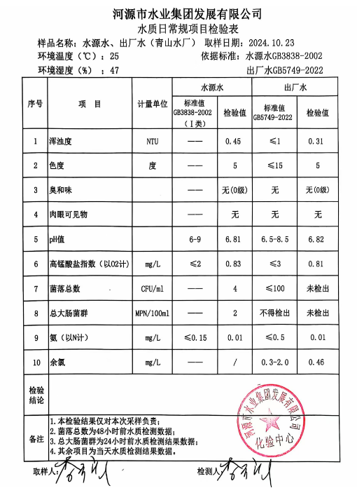2024年10月23日水質(zhì)檢驗(yàn)報告